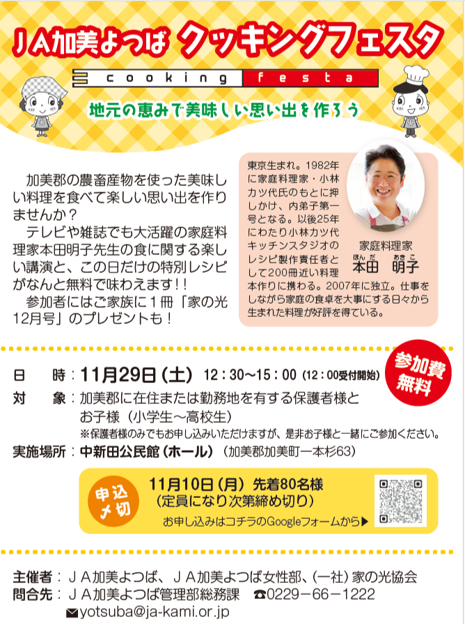 11月29日(土)JA加美よつばクッキングフェスタ開催