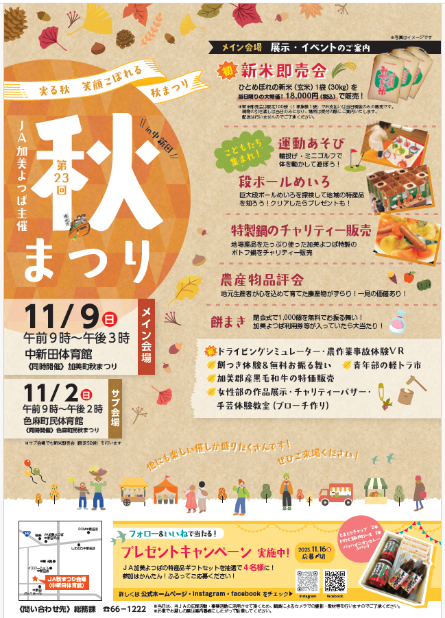 今回の目玉企画「新米即売会」を始め、様々なイベントをご用意して皆さまをお待ちしております。