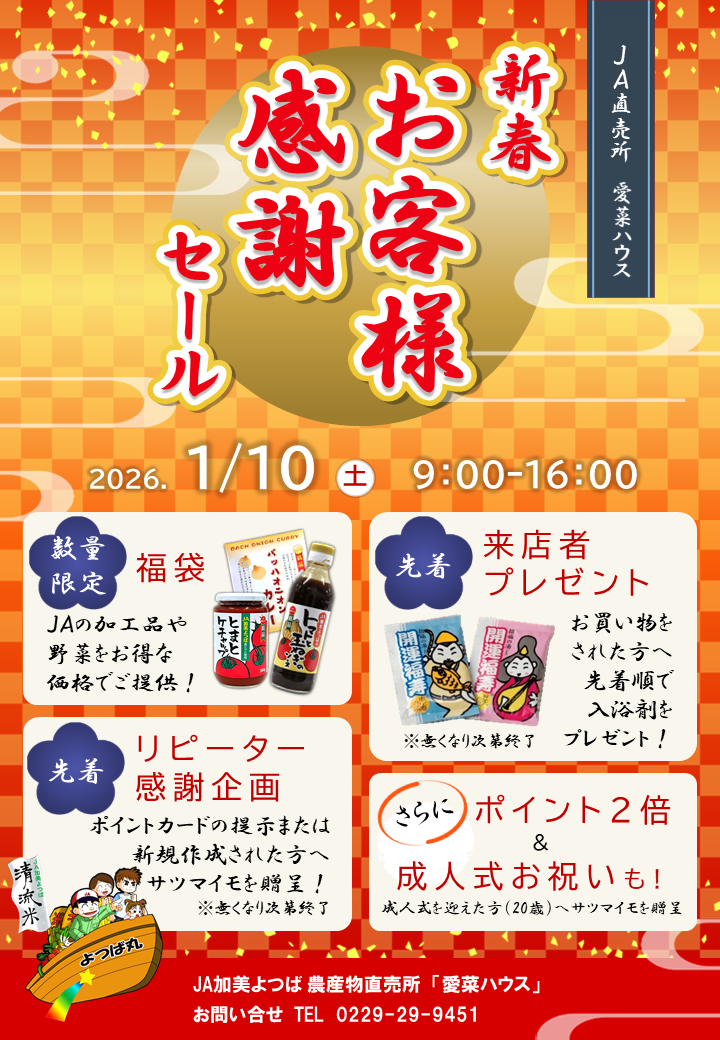 2026.1.10(土) 直売所「愛菜ハウス」新春お客様感謝セール 開催